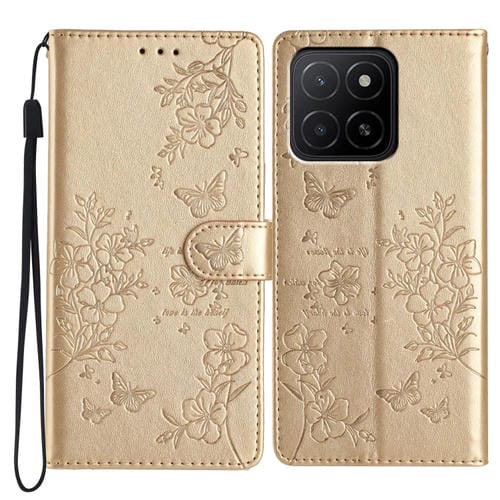 Funda de Cuero para Honor X5B con Mariposas y Flores (Dorada)
