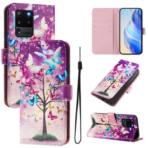 Funda de Cuero para Teléfono Samsung Galaxy S20 Ultra con Patrón Dibujo Artístico (Rama de Mariposa)
