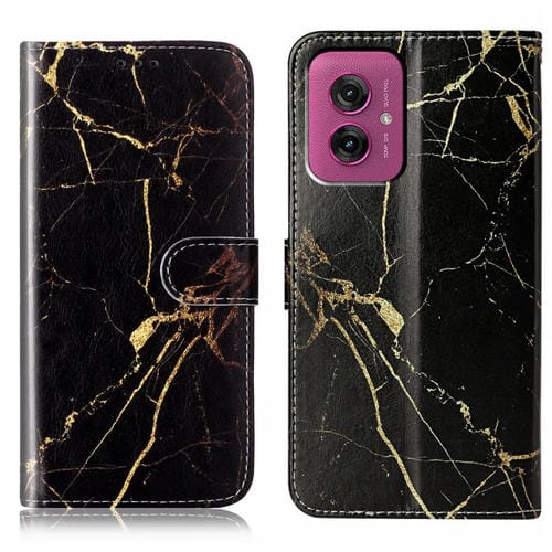 Funda de Cuero para Motorola Moto G55 con Patrón Mármol y Dibujo de Colores (Negro y Dorado)