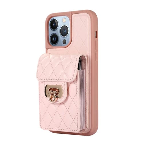 Étui de téléphone en cuir avec emplacement pour carte pour iPhone 13 Pro Max (rose)