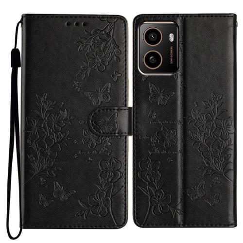Funda de Cuero para Teléfono Hmd Pulse+ con Diseño de Mariposas y Flores (Negra)