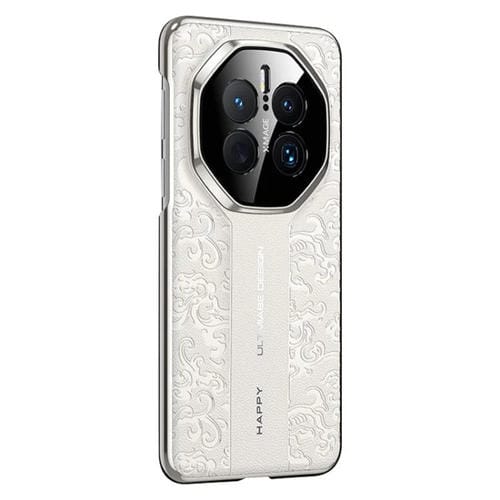 Funda de Cuero Huawei Mate 50 Pro con Diseño de Dragón En la Nube (Blanca)