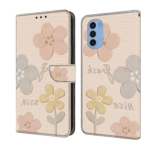 Funda de Cuero Pintada a Mano Motorola Moto G31 Protección (Flores Beige)