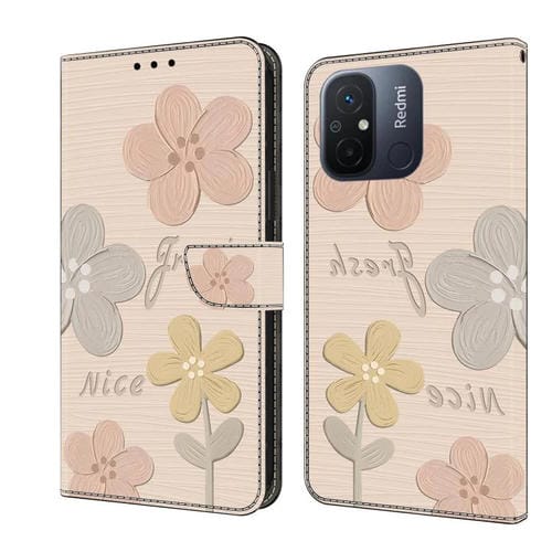 Funda de Cuero Pintada a Mano para Redmi 12C/11A (Flores Beige)