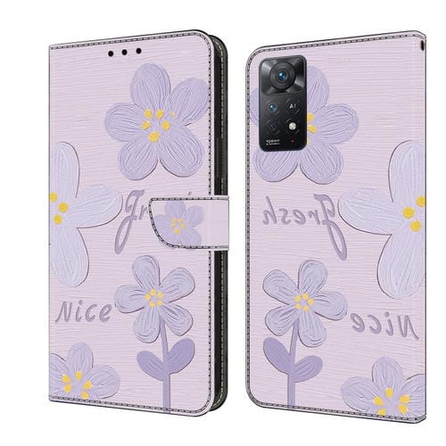 Funda de Cuero Pintada a Mano para Redmi Note 12 Pro 4G/11 Pro (Flores de Color Morado Oscuro)