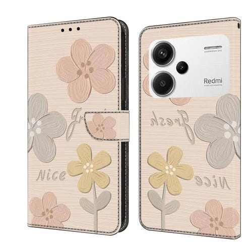 Funda de Cuero Pintada a Mano para Redmi Note 13 Pro+ (Flores Beige)