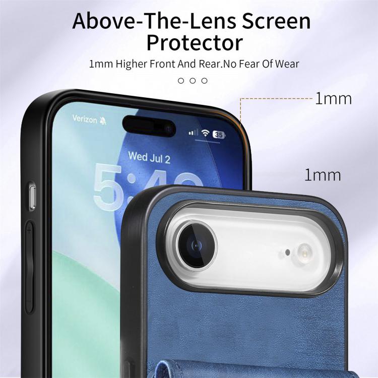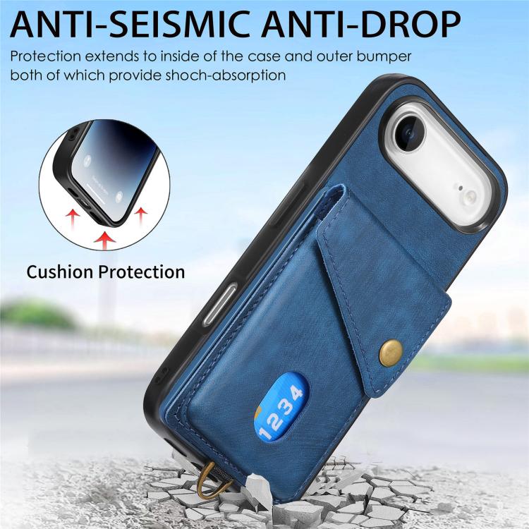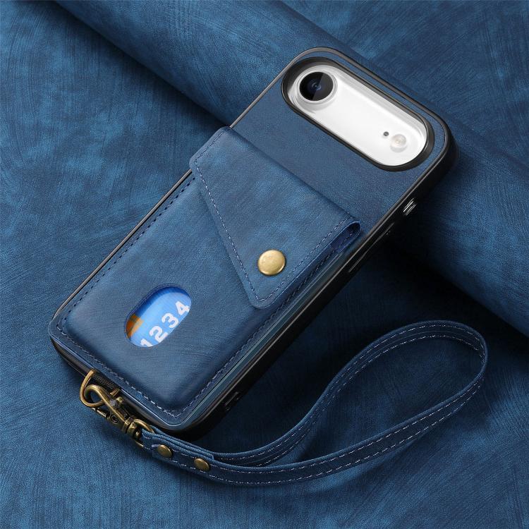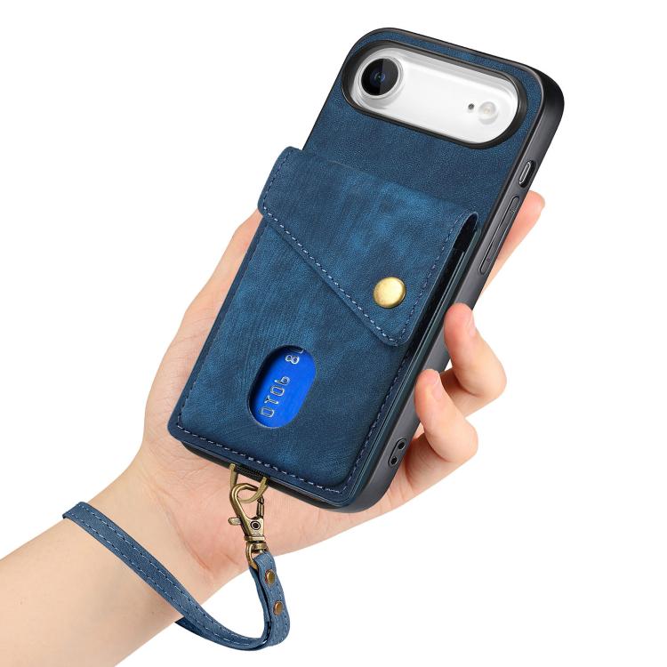 Funda de cuero plegable con correa para iPhone Air, estilo retro, tipo billetera (azul)