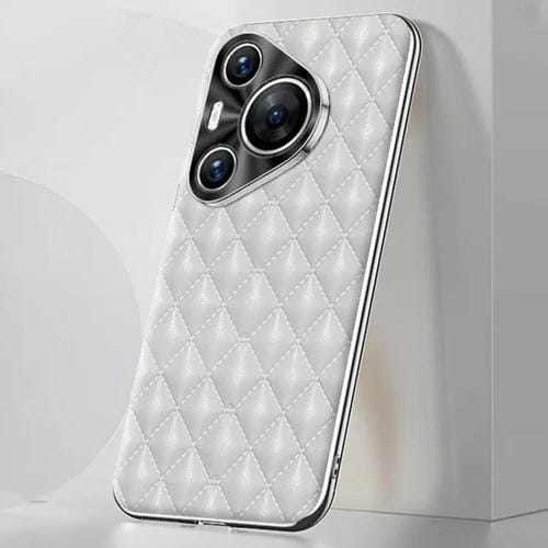 - 1x Funda de Cuero PU con Textura Rómbica y Borde Plateado para Huawei Pura 70 (Blanca)