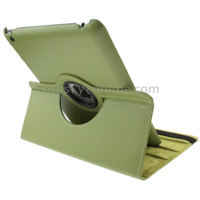 Funda Cuero Pu Giratoria 360 Grados para iPad 3 iPad 2 iPad 4 con Reposo Activación Soporte (Verde Oliva)