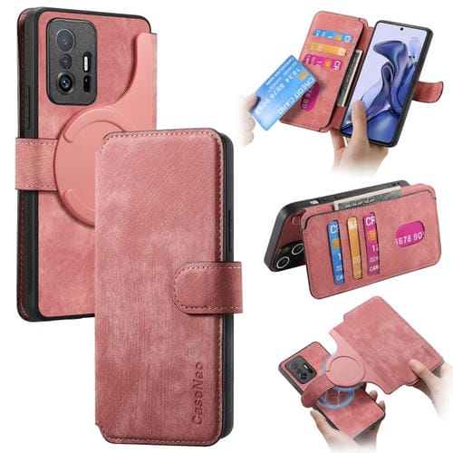 Funda Neo Magsafe Rfid Antirrobo de Cuero Retro para Xiaomi Mi 11T / 11T Pro 5G (Rosa)