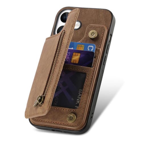 Funda de cuero retro con cremallera para iPhone 17 (marrón)
