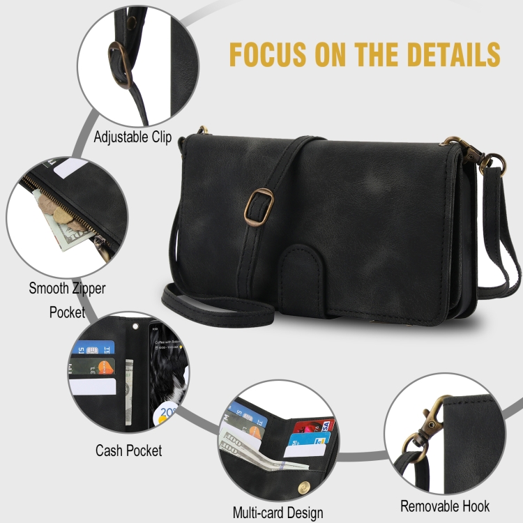 2. Función de billetera multitarjeta: 9 ranuras para tarjetas y 1 compartimento para efectivo con cremallera para guardar sus tarjetas de crédito, efectivo o billetes pequeños para las necesidades diarias.