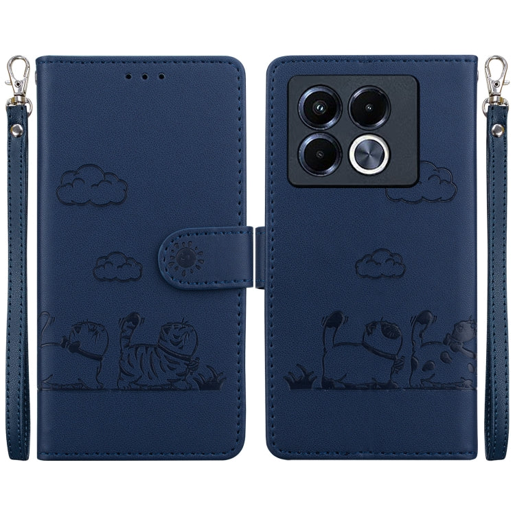 Funda de Cuero Rfid para Infinix Note 40 5G con Diseño de Gatos (Azul)