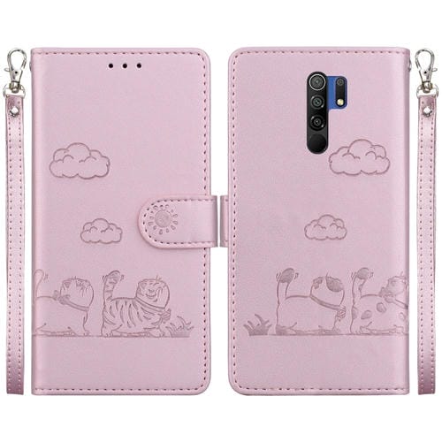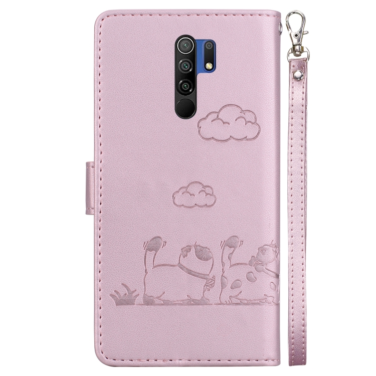 Funda de Cuero Rfid con Diseño de Gatos para Redmi 9/9 Prime (Oro Rosa)