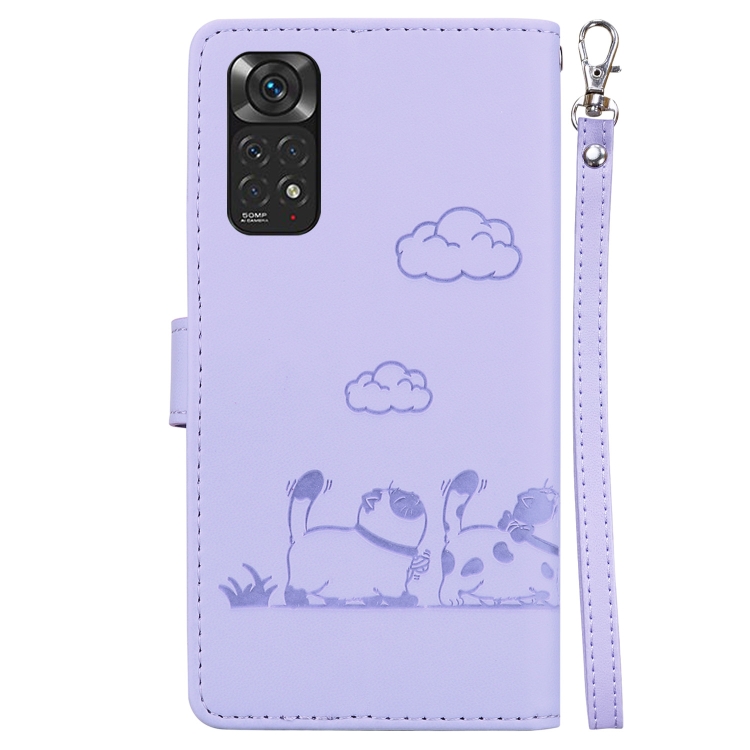 Funda de Cuero Rfid con Diseño de Gatos Lindos para Redmi Note 11 (Morado)