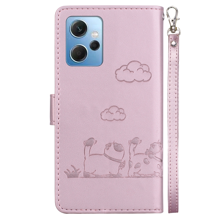 Funda de Cuero Rfid con Diseño de Gatos Lindos para Redmi Note 12 4G (Oro Rosa)