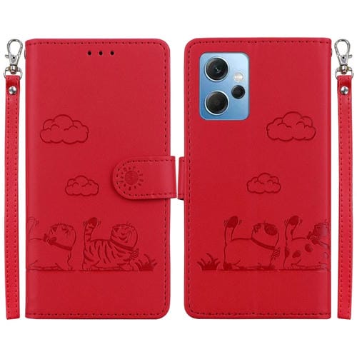 Funda de Cuero Rfid con Diseño de Gatos Lindos para Redmi Note 12 4G (Roja)