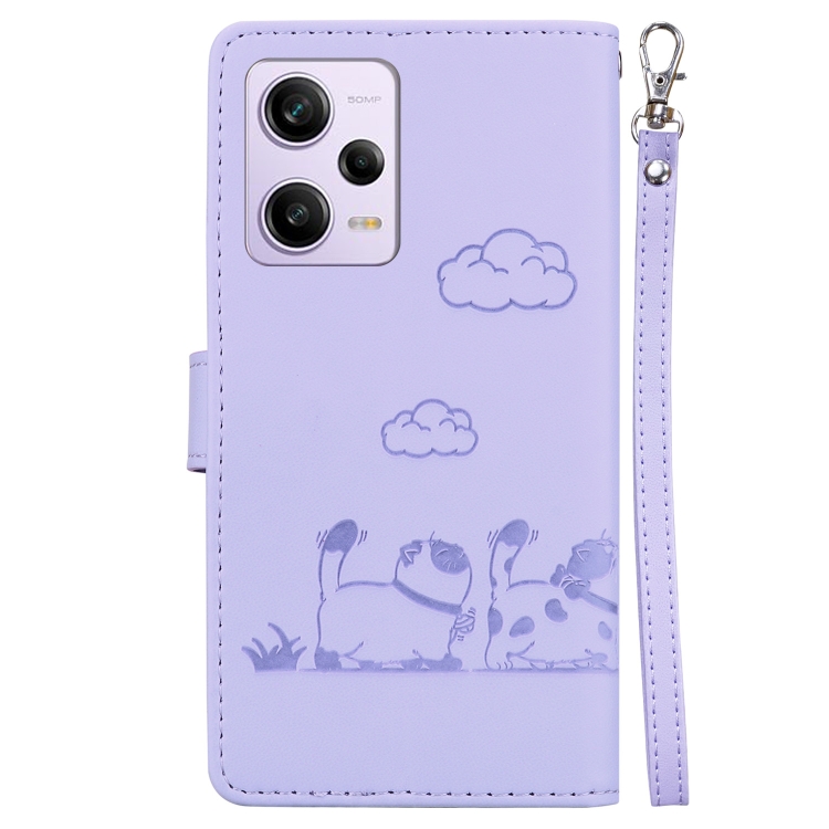 Funda de Cuero Rfid con Diseño de Gatos Lindos para Redmi Note 12 Pro 5G (Morada)