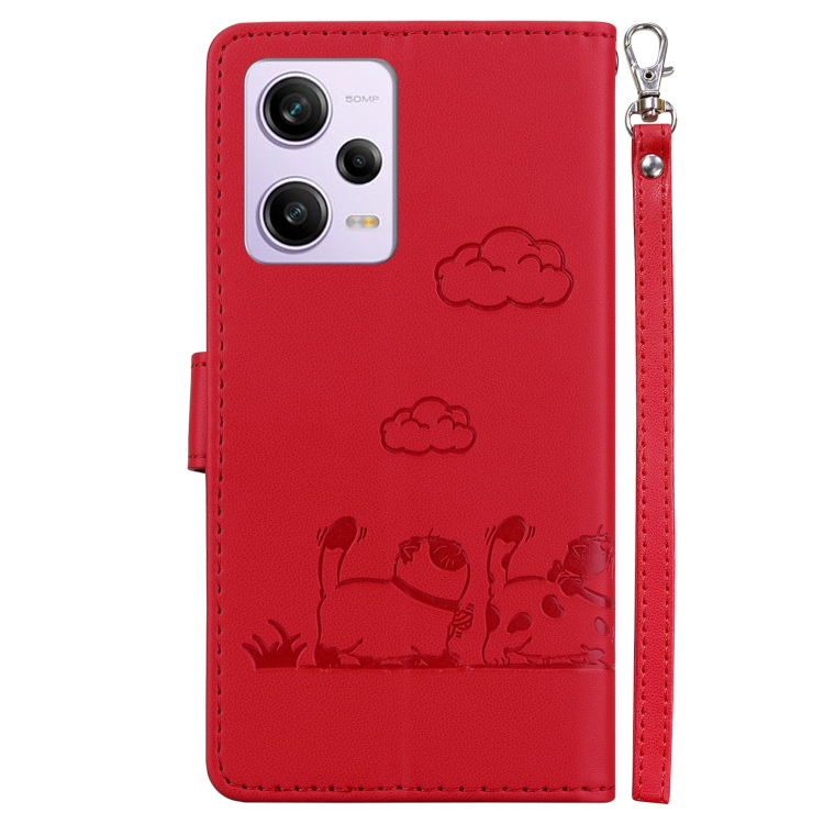 Funda de Cuero Rfid con Diseño de Gatos Lindos para Redmi Note 12 Pro 5G (Roja)