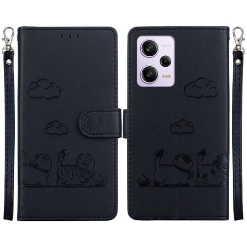 Funda de Cuero Rfid con Diseño de Gatos Lindos para Redmi Note 12 Pro 5G (Negro)