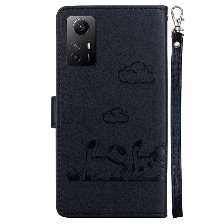 Funda de Cuero Rfid con Diseño de Gatos para Redmi Note 12S (Negra)