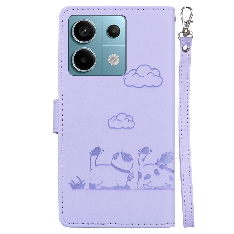 Funda de Cuero Rfid con Diseño de Gatos para Redmi Note 13 Pro 5G (Morada)