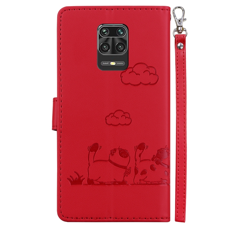 Funda de Cuero Rfid con Diseño de Gatos Lindos para Redmi Note 9 Pro (Roja)