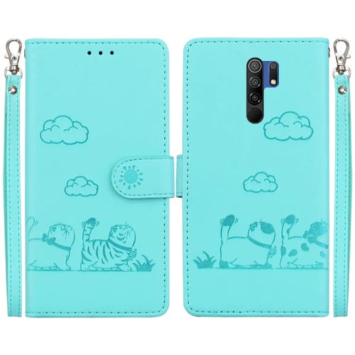 Funda de Cuero Rfid con Diseño de Gatos para Xiaomi Poco M2 (Verde)