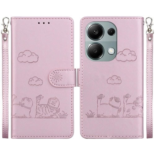 Funda de Cuero Rfid con Diseño de Gatos para Xiaomi Poco M6 Pro 4G (Oro Rosa)