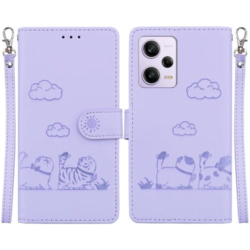 Funda de Cuero Rfid con Diseño de Gatos para Xiaomi Poco X5 Pro (Morada)