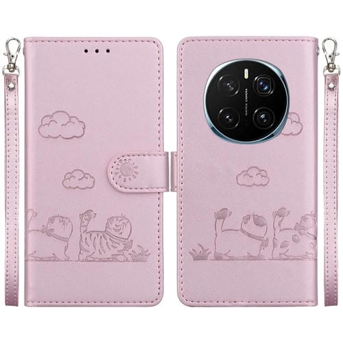 Funda de Cuero Rfid para Honor Magic7 Pro con Diseño de Gatos (Oro Rosa)