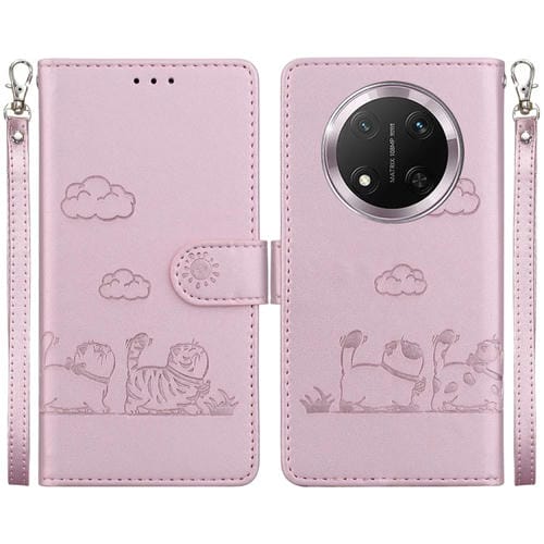 Funda de Cuero Rfid para Honor X9C con Diseño de Gatos (Oro Rosa)