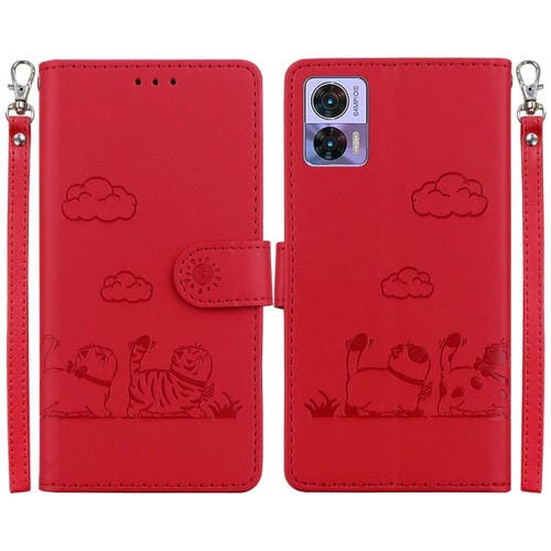 Funda de Cuero Rfid para Motorola Edge 30 Neo y 30 Lite con Diseño de Gatos (Rojo)