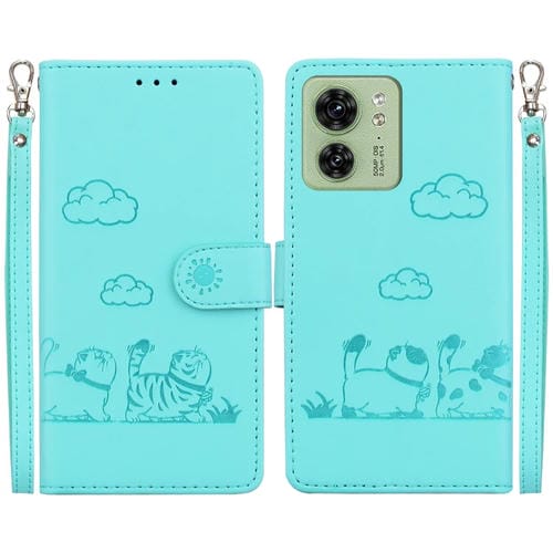 Funda de Cuero Rfid con Diseño de Gatos para Motorola Edge 40 (Verde)
