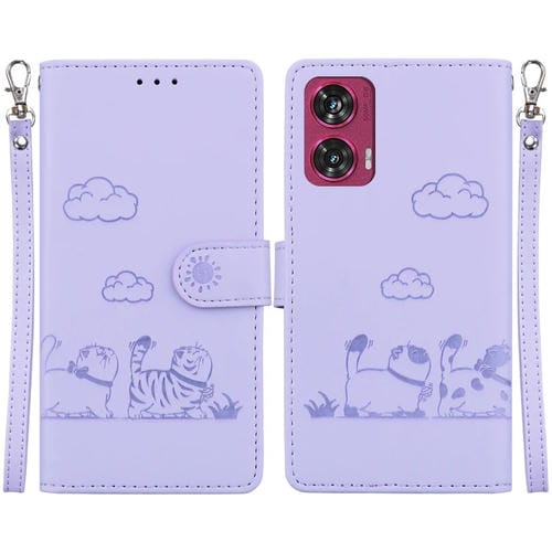 Funda de Cuero Rfid para Motorola Edge 50 Fusion con Diseño de Gatos (Morado)