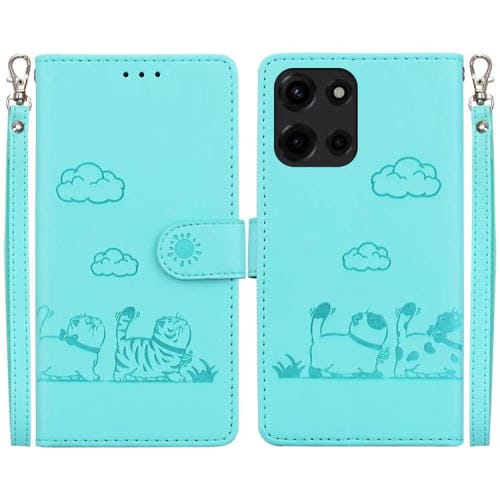 Funda de Cuero RFID para Motorola Moto G 5G 2025 con Diseño de Gatos (Verde)
