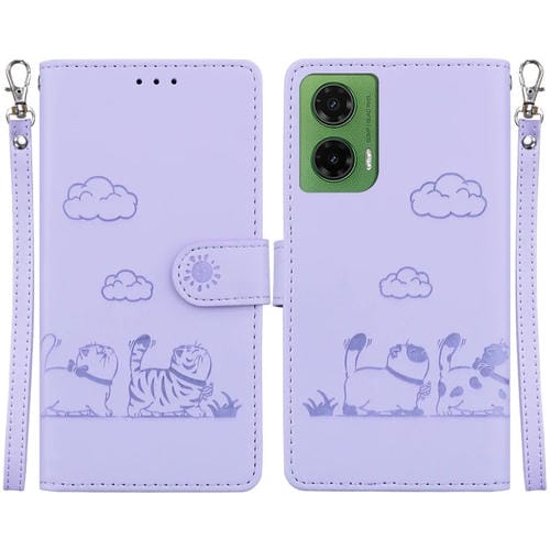 Funda de Cuero Rfid para Motorola Moto G35 con Diseño de Gatos (Morado)