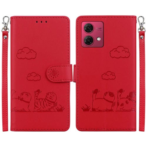 Funda de Cuero Rfid para Motorola Moto G84 con Diseño de Gatos (Rojo)