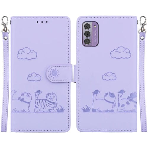 Funda de Cuero Rfid para Nokia G42 con Diseño de Gatos (Morado)