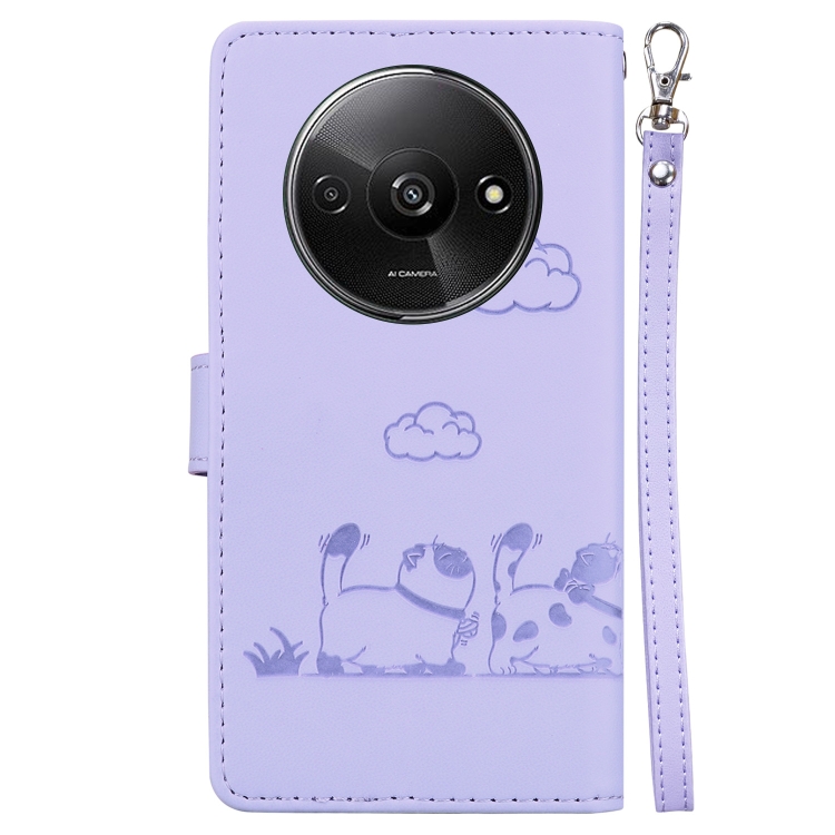Funda de Cuero Rfid con Diseño de Gatos para Redmi A3 (Morado)