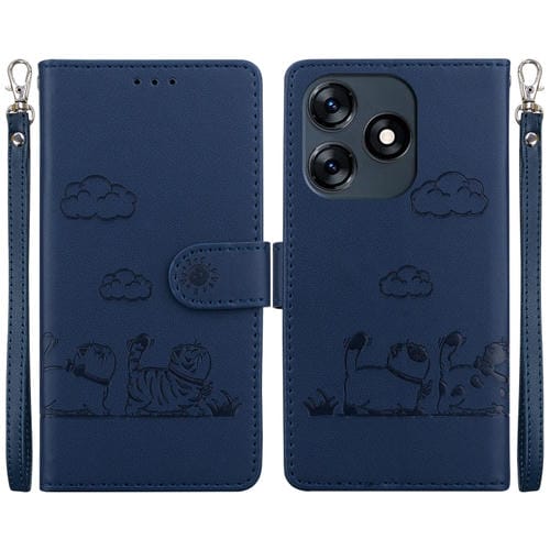 Funda de Cuero Rfid para Tecno Spark 10 4G y Spark 10C con Diseño de Gatos (Azul)