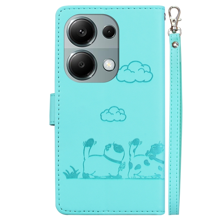 Funda de Cuero Rfid con Diseño de Gatos para Xiaomi Poco M6 Pro 4G (Verde)