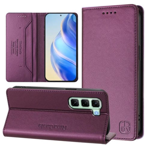 Funda de Cuero Rfid con Doble Pliegue y Succión Magnética para Infinix Hot 50 4G Rc01 (Violeta)