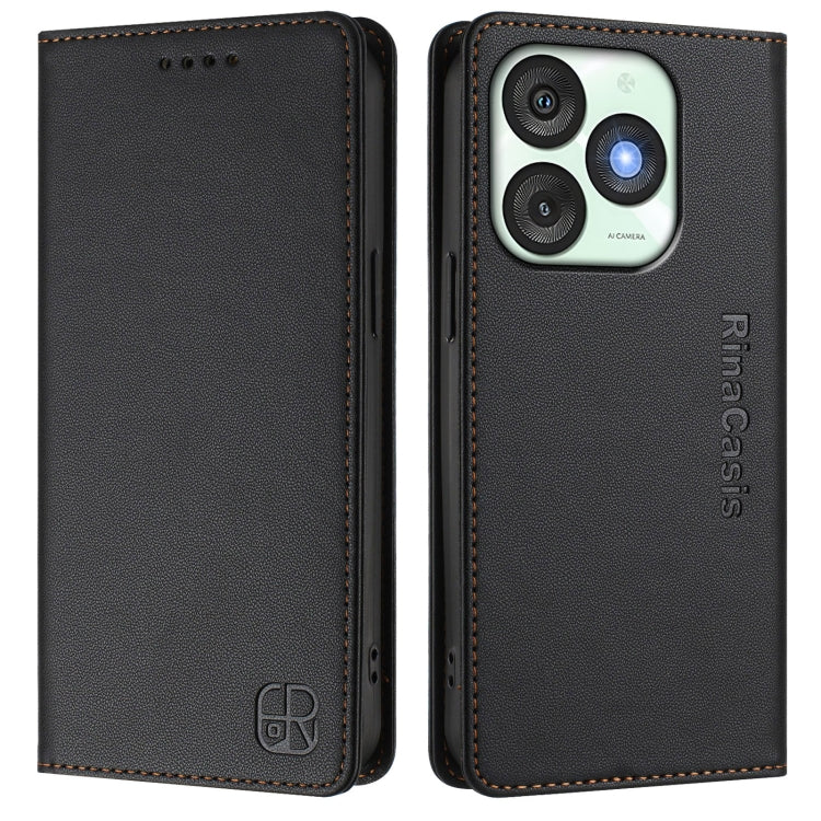Funda de Cuero Rfid con Doble Pliegue y Succión Magnética para Teléfono Itel A50 Rc01 (Negra)