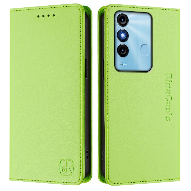Funda de Cuero Rfid para Teléfono Itel P38/S17/Vision 3 Rc01 con Doble Pliegue y Succión Magnética (Verde Hierba)