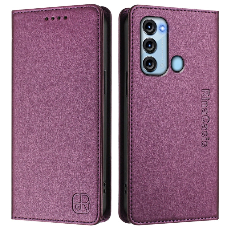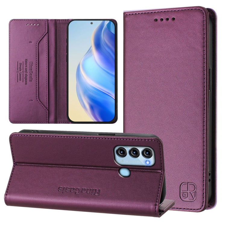 Funda de Cuero Rfid para Itel S17/S661W/Vision 3 Rc01 con Doble Pliegue y Succión Magnética (Violeta)