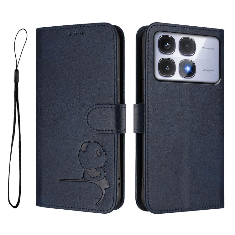 Funda de cuero RFID con estampado de panda y cordón para Redmi K70 Ultra (azul)