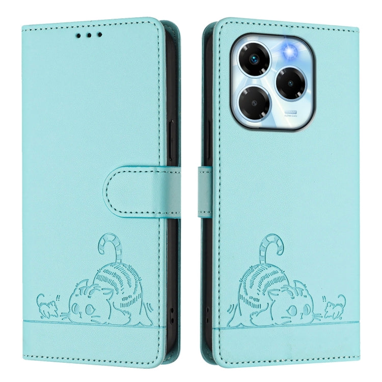 Funda de Cuero RFID para Infinix Note 40X 5G con Estampado de Rata y Gato y Cordón (Verde Menta)