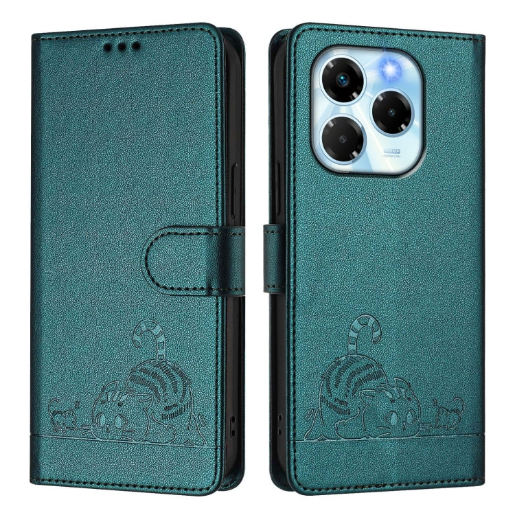 Funda de Cuero Rfid para Infinix Note 40X 5G con Estampado de Rata y Gato y Cordón (Verde Pavo Real)