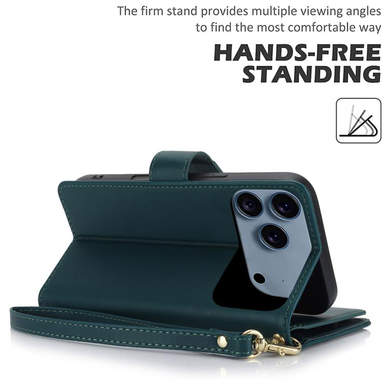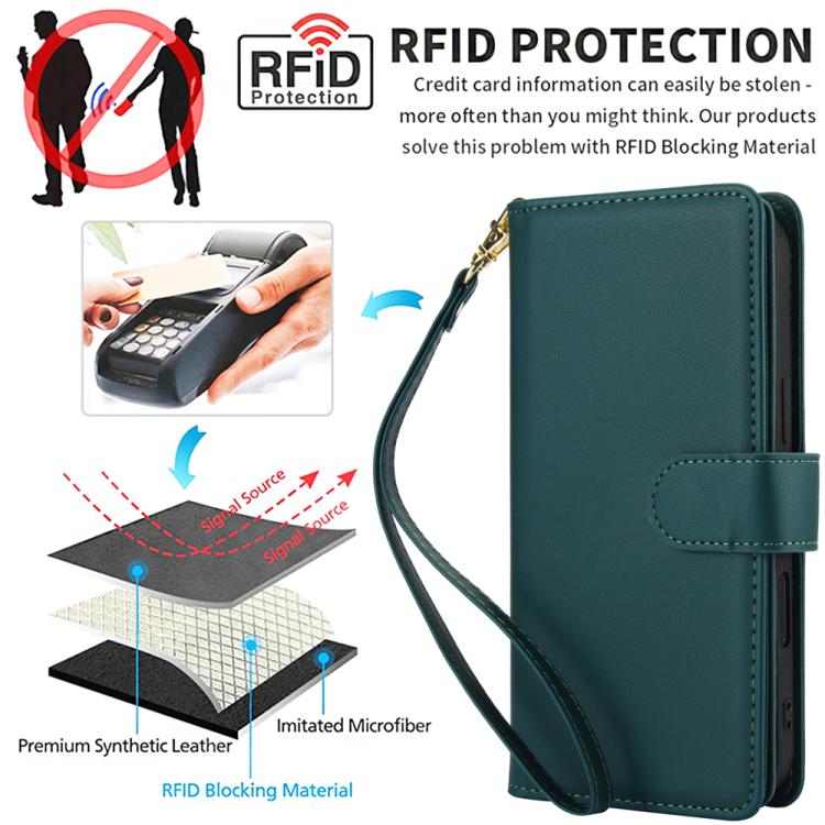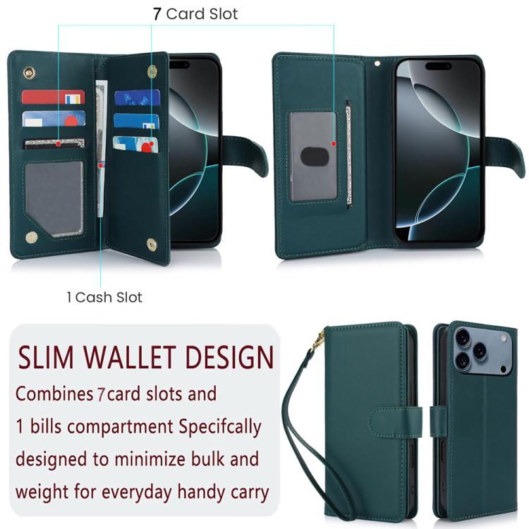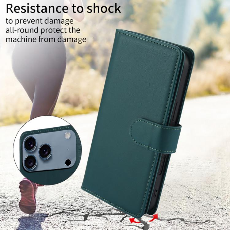 Funda de cuero RFID con múltiples tarjetas para iPhone 17 Pro (verde)